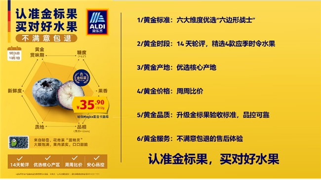 全球连锁精选平价超市ALDI奥乐齐作为硬折扣模式的引领者,始终秉持“好品质,够低价”的品牌主张,致力于为中国消费者提供省钱、省心、省时的购物体验。在持续深耕中国市场的过程中,奥乐齐不断洞察本土需求,并通过创新升级优化购物体验:针对消费者省心选购水果的需求,升级“金标果”选果标准;为提升消费者日常购物的新鲜感,推出月月上新的“奥家特卖”系列,创造惊喜购物体验。